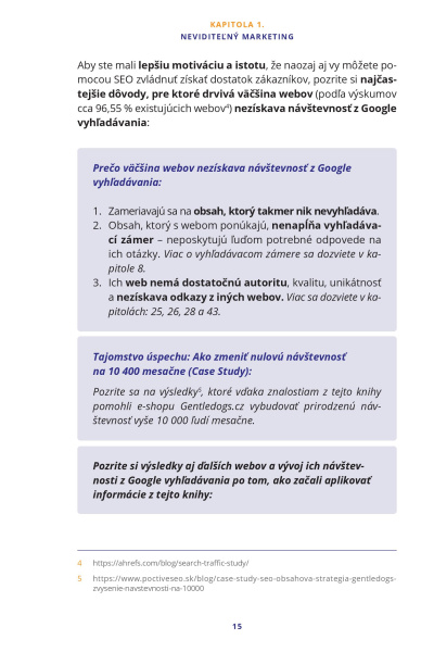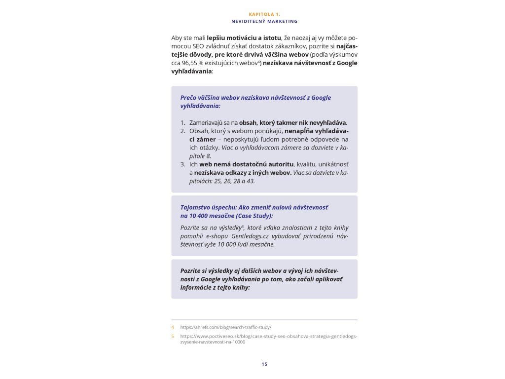 Praktický návod: Kniha obsahuje aj bonusovú kapitolu s praktickým návodom, ako získať so svojím webom TOP pozície v Google vyhľadávaní na akúkoľvek tému.